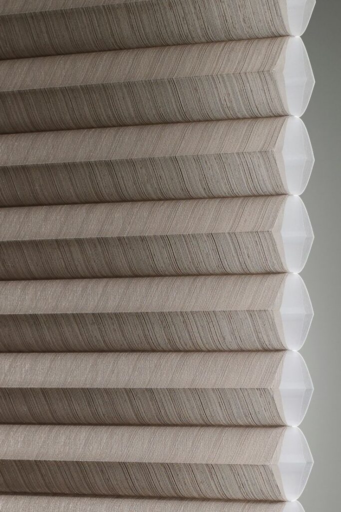 Each pleated “cell” creates an air pocket that functions as a barrier between your window and the room, allowing for a more stable indoor temperature. In the winter, these pockets trap warm air inside to limit heat loss, while in the summer, they prevent outdoor heat from entering, keeping your home cooler. Insulation efficacy varies depending on the amount of layers, single-cell or double-cell, with double-cell shades saving the most energy.