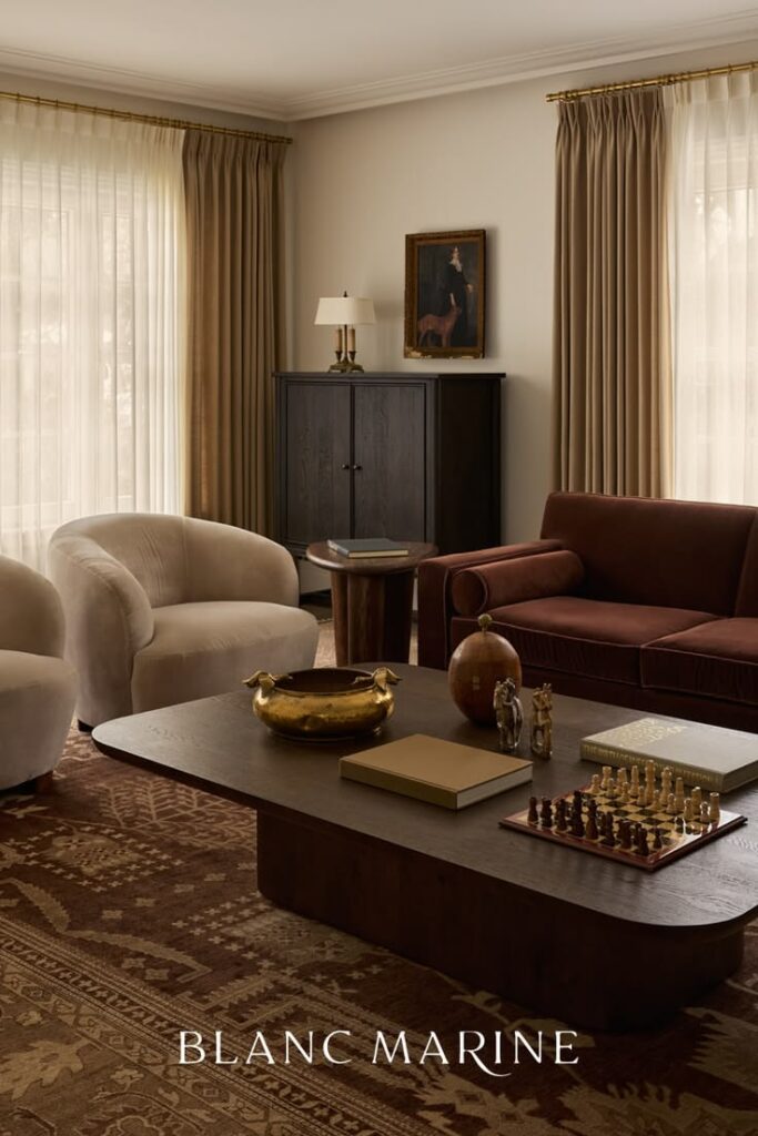 Chairs also introduce form. Curved backs, sculptural frames, tapered legs, or oversized cushions contribute to the room’s rhythm and architecture. Sometimes, the shape alone is enough to make the chair feel like functional art.